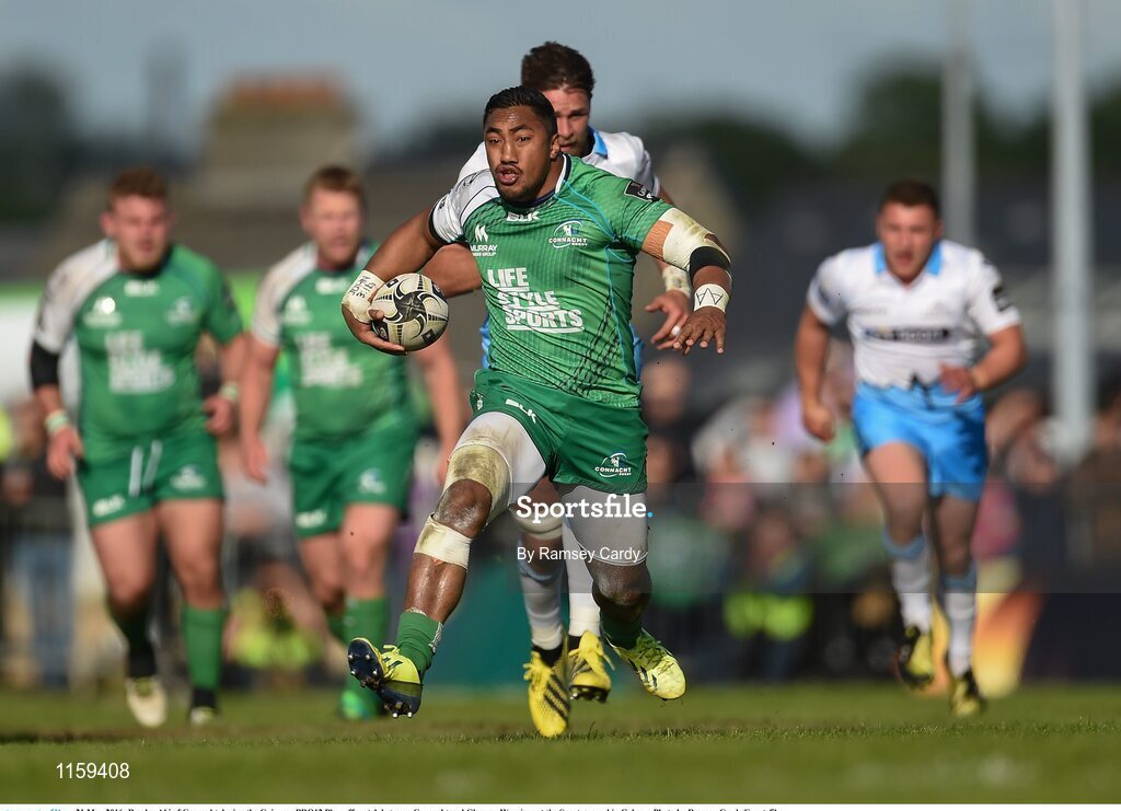 21 May 2016; Bundee Aki of Connacht during the Guinness PRO12 Play-off match between Connacht and Glasgow Warriors at the Sportsground in Galway. Photo by Ramsey Cardy/Sportsfile