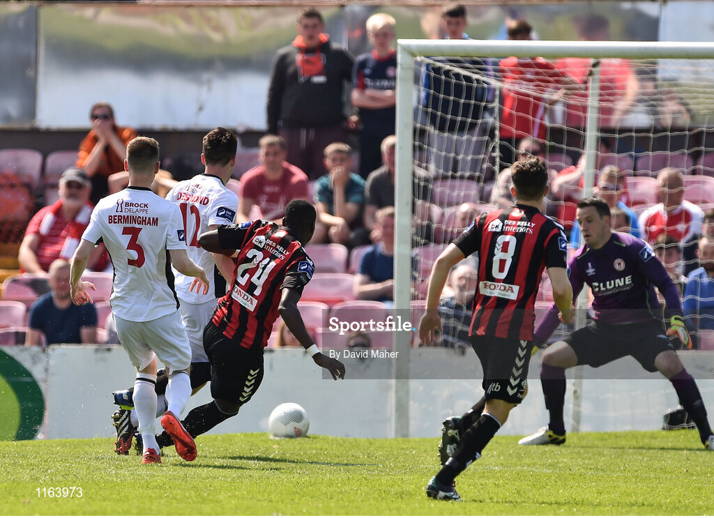 29 May 2016; Ismahil Akinade of Bohemians scores his side's second goal in the SSE Airtricity League Premier Division match between Bohemians and St Patrick's Athletic at Dalymount Park, Dublin. Photo by David Maher/Sportsfile