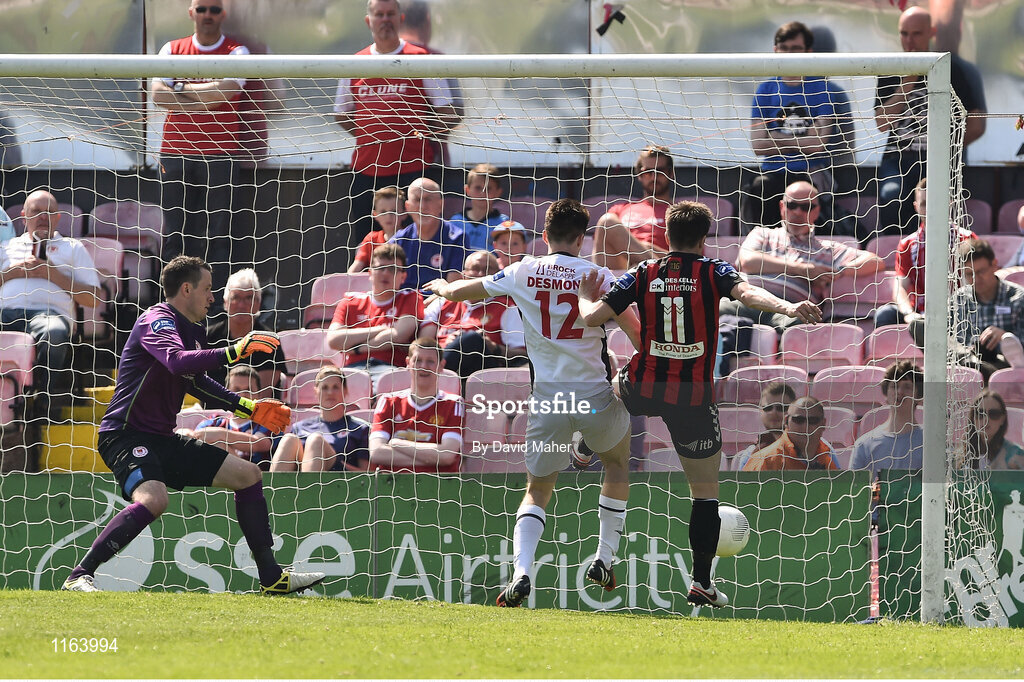 29 May 2016; Jake Kelly of Bohemians scores his side's fourth goal in the SSE Airtricity League Premier Division match between Bohemians and St Patrick's Athletic at Dalymount Park, Dublin. Photo by David Maher/Sportsfile