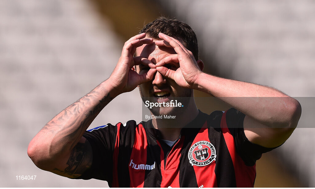 29 May 2016; Kurtis Byrne Bohemians celebrates after scoring his side's fifth goal in the SSE Airtricity League Premier Division match between Bohemians and St Patrick's Athletic at Dalymount Park, Dublin. Photo by David Maher/Sportsfile