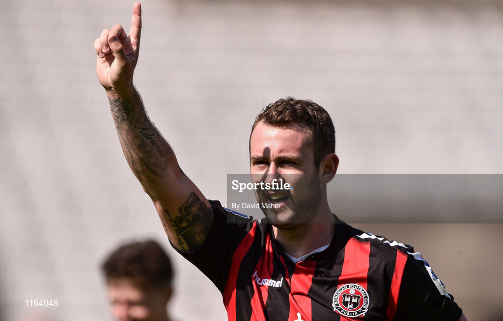 29 May 2016; Kurtis Byrne Bohemians celebrates after scoring his side's fifth goal in the SSE Airtricity League Premier Division match between Bohemians and St Patrick's Athletic at Dalymount Park, Dublin. Photo by David Maher/Sportsfile