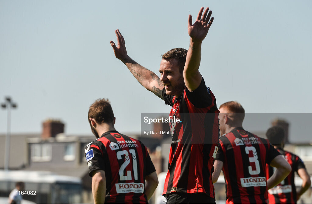 29 May 2016; Kurtis Byrne of Bohemians celebrates after scoring his side's fitth goal in the SSE Airtricity League Premier Division match between Bohemians and St Patrick's Athletic at Dalymount Park, Dublin. Photo by David Maher/Sportsfile