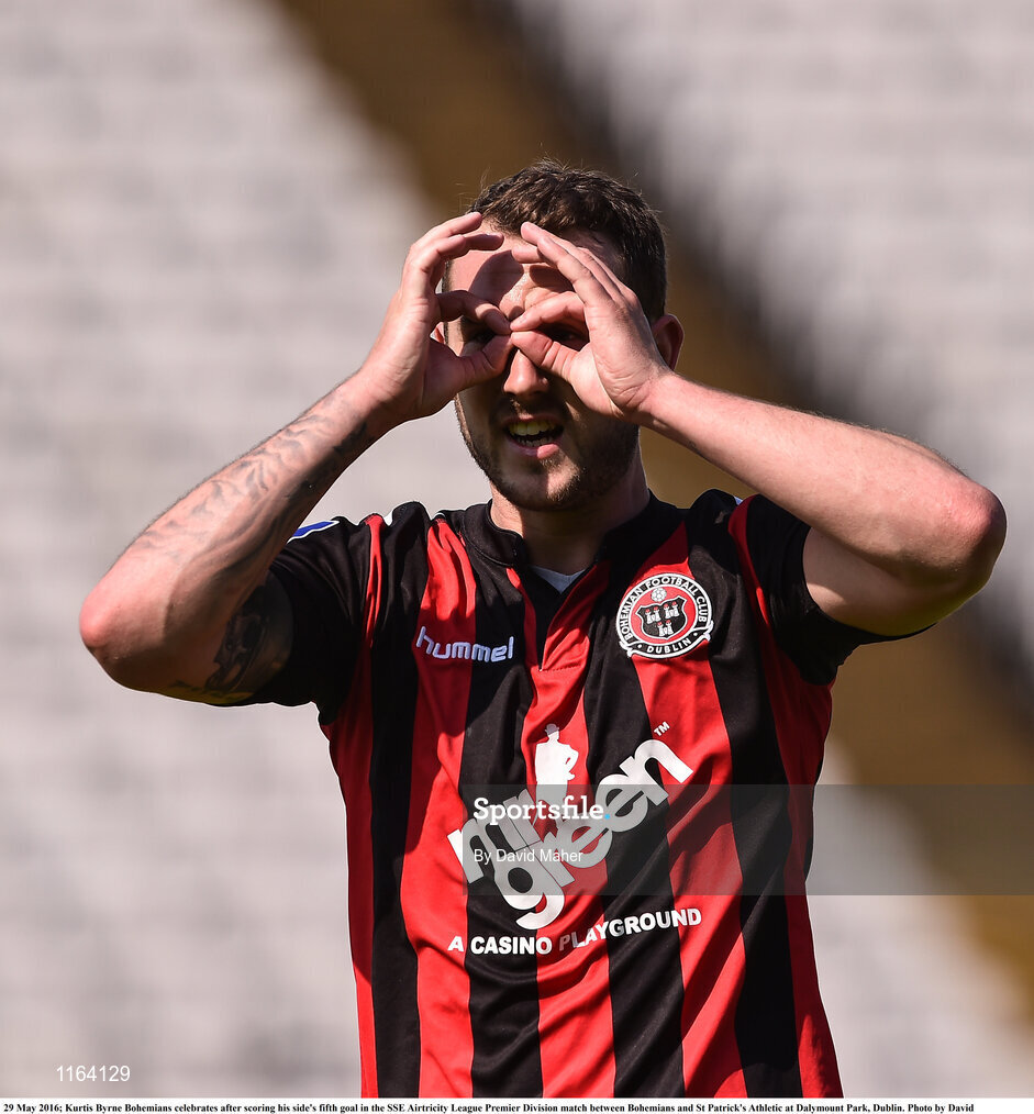 29 May 2016; Kurtis Byrne Bohemians celebrates after scoring his side's fifth goal in the SSE Airtricity League Premier Division match between Bohemians and St Patrick's Athletic at Dalymount Park, Dublin. Photo by David Maher/Sportsfile