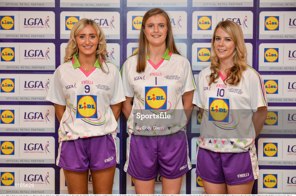 1 June 2016; Lidl National Football League Division 4 Team of the League 2016 Antrim players, from left, Áine Tubridy, Anna McCann, and Mairead Cooper at the Lidl Ladies Team of The Leagues Award Night. The Lidl Teams of the League were presented at Croke Park with 60 players recognised for their performances throughout the 2016 Lidl National Football League Campaign. The 4 teams were selected by opposition managers who selected the best players in their position with the players receiving the most votes being selected in their position. Croke Park, Dublin. Photo by Cody Glenn/Sportsfile