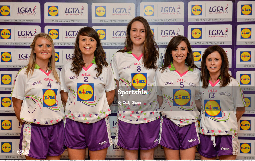 1 June 2016; Lidl National Football League Division 4 Team of the League 2016 Limerick players, from left, Olivia Giltnenae, Alva Neary, Niamh Richardson, Kristine Reidy, and Dymphna O'Brien at the Lidl Ladies Team of The Leagues Award Night. The Lidl Teams of the League were presented at Croke Park with 60 players recognised for their performances throughout the 2016 Lidl National Football League Campaign. The 4 teams were selected by opposition managers who selected the best players in their position with the players receiving the most votes being selected in their position. Croke Park, Dublin. Photo by Cody Glenn/Sportsfile