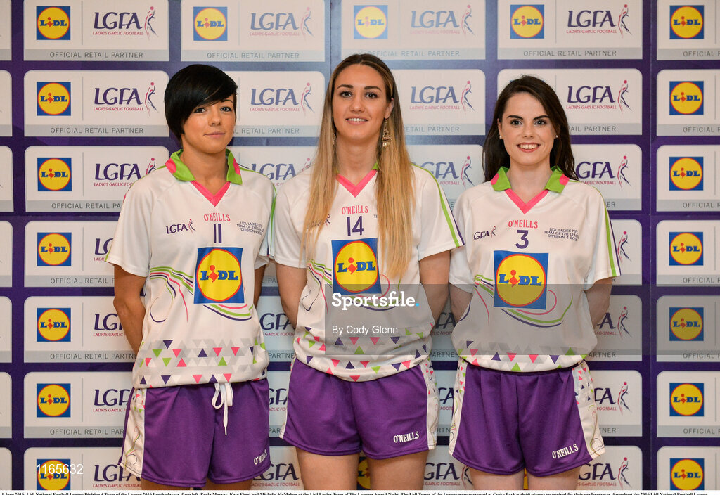 1 June 2016; Lidl National Football League Division 4 Team of the League 2016 Louth players, from left, Paula Murray, Kate Flood and Michelle McMahon at the Lidl Ladies Team of The Leagues Award Night. The Lidl Teams of the League were presented at Croke Park with 60 players recognised for their performances throughout the 2016 Lidl National Football League Campaign. The 4 teams were selected by opposition managers who selected the best players in their position with the players receiving the most votes being selected in their position. Croke Park, Dublin. Photo by Cody Glenn/Sportsfile
