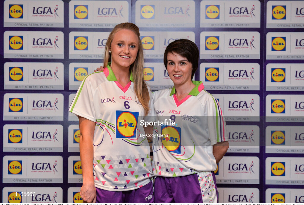 1 June 2016; Lidl National Football League Division 1 Team of the League 2016 layers Neamh Woods, Tyrone, left, and Cora Courtney, Monaghan, at the Lidl Ladies Team of the Leagues Award Night. The Lidl Teams of the League were presented at Croke Park with 60 players recognised for their performances throughout the 2016 Lidl National Football League Campaign. The 4 teams were selected by opposition managers who selected the best players in their position with the players receiving the most votes being selected in their position. Croke Park, Dublin. Photo by Cody Glenn/Sportsfile