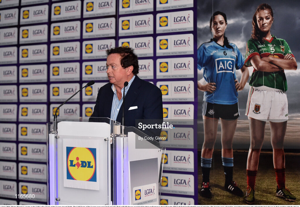 1 June 2016; Marty Morrissey speaks at the Lidl Ladies Teams of the League Award Night. The Lidl Teams of the League were presented at Croke Park with 60 players recognised for their performances throughout the 2016 Lidl National Football League Campaign. The 4 teams were selected by opposition managers who selected the best players in their position with the players receiving the most votes being selected in their position. Croke Park, Dublin. Photo by Cody Glenn/Sportsfile