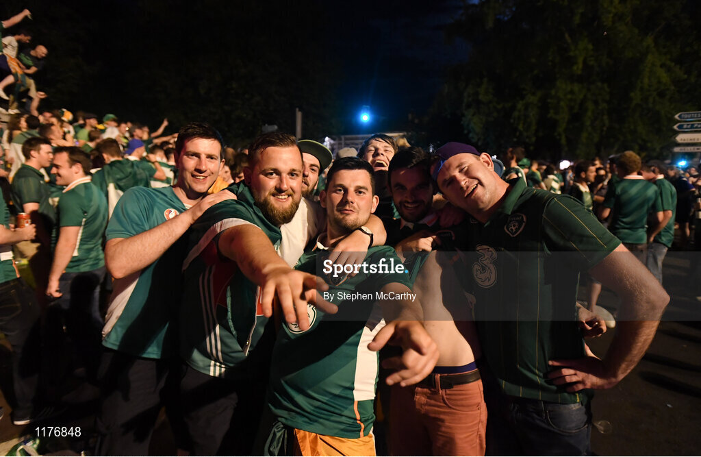 22 June 2016; Republic of Ireland supporters celebrate their victory during the early hours of the morning following the UEFA Euro 2016 Group E match between Italy and Republic of Ireland in Lille, France. Photo by Stephen McCarthy/Sportsfile