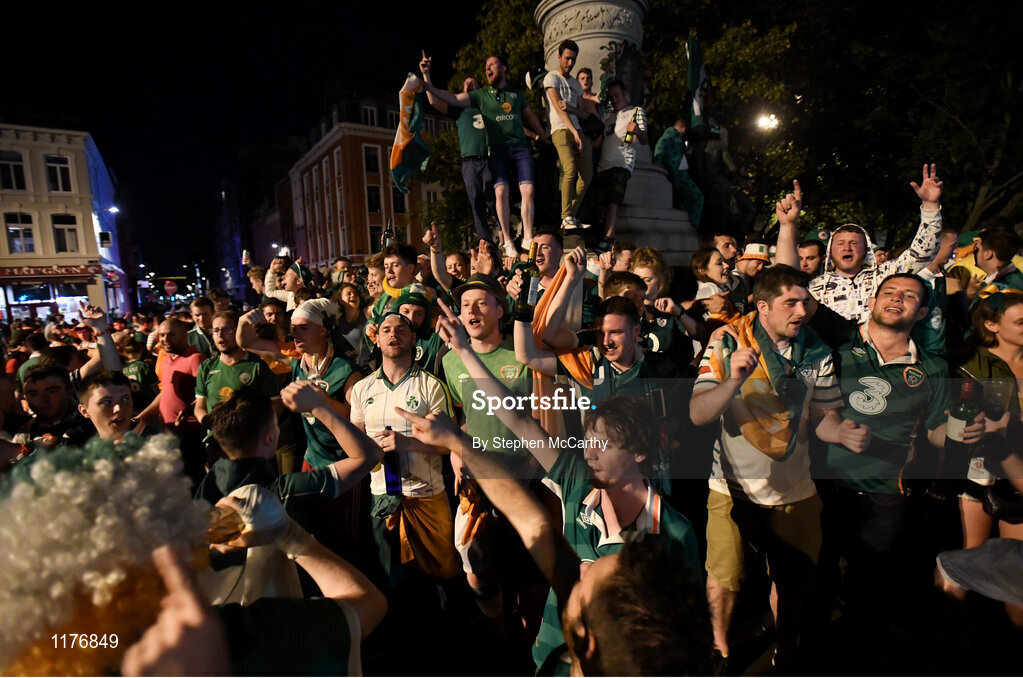22 June 2016; Republic of Ireland supporters celebrate their victory during the early hours of the morning following the UEFA Euro 2016 Group E match between Italy and Republic of Ireland in Lille, France. Photo by Stephen McCarthy/Sportsfile