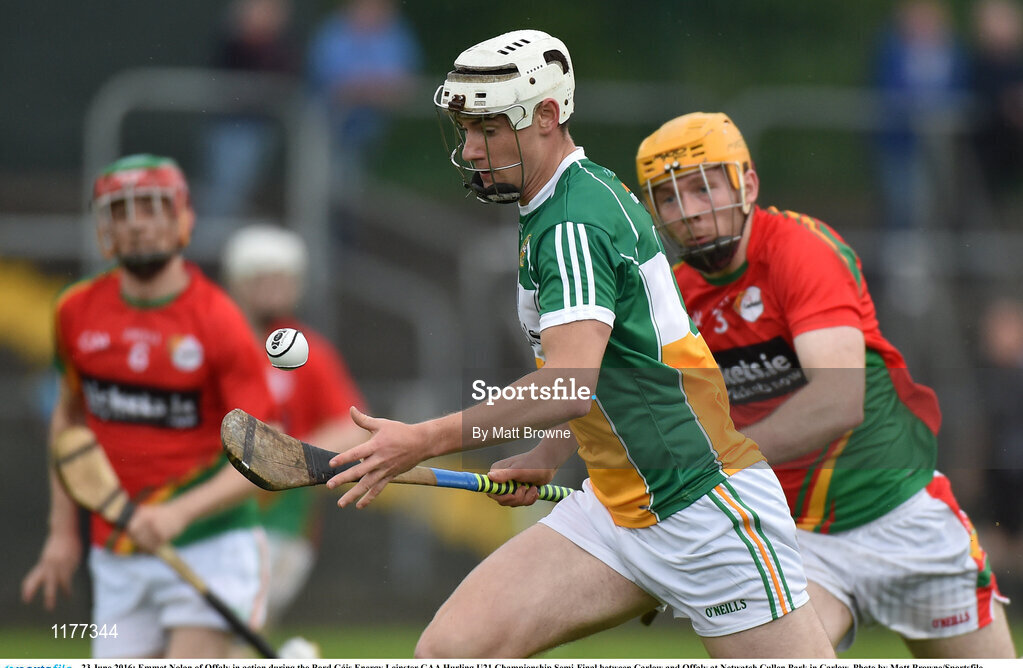 23 June 2016; Emmet Nolan of Offaly in action during the Bord Gáis Energy Leinster GAA Hurling U21 Championship Semi-Final between Carlow and Offaly at Netwatch Cullen Park in Carlow. Photo by Matt Browne/Sportsfile
