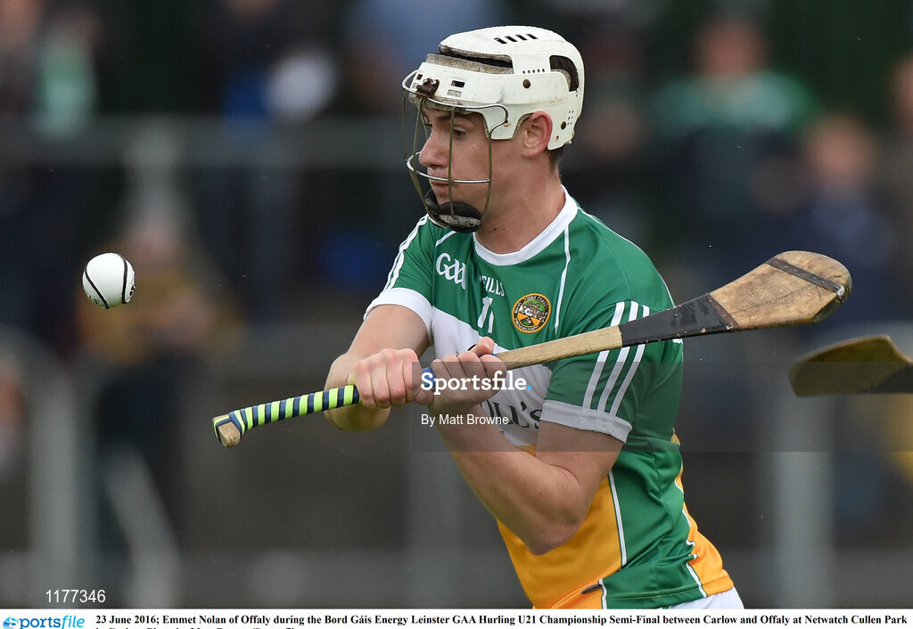 23 June 2016; Emmet Nolan of Offaly during the Bord Gáis Energy Leinster GAA Hurling U21 Championship Semi-Final between Carlow and Offaly at Netwatch Cullen Park in Carlow. Photo by Matt Browne/Sportsfile