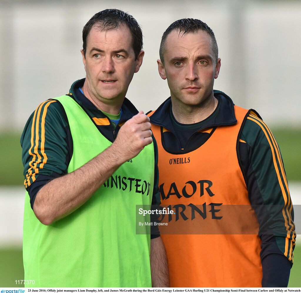 23 June 2016; Offaly joint managers Liam Dunphy, left, and James McGrath during the Bord Gáis Energy Leinster GAA Hurling U21 Championship Semi-Final between Carlow and Offaly at Netwatch Cullen Park in Carlow. Photo by Matt Browne/Sportsfile