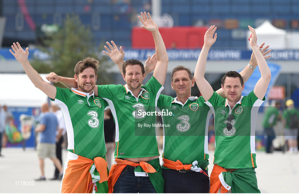 26 June 2016; Republic of Ireland supporters Keith, Richard and Gerard Egan, from Dún Laoghaire, with their friend Michael Toohey from Neenagh, Co. Tipperary, ahead of the UEFA Euro 2016 Round of 16 match between France and Republic of Ireland at Stade des Lumieres in Lyon, France. Photo by Ray McManus/Sportsfile