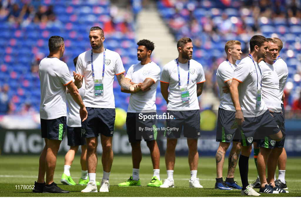 26 June 2016; Republic of Ireland players on the pitch ahead of the UEFA Euro 2016 Round of 16 match between France and Republic of Ireland at Stade des Lumieres in Lyon, France. Photo by Stephen McCarthy/Sportsfile