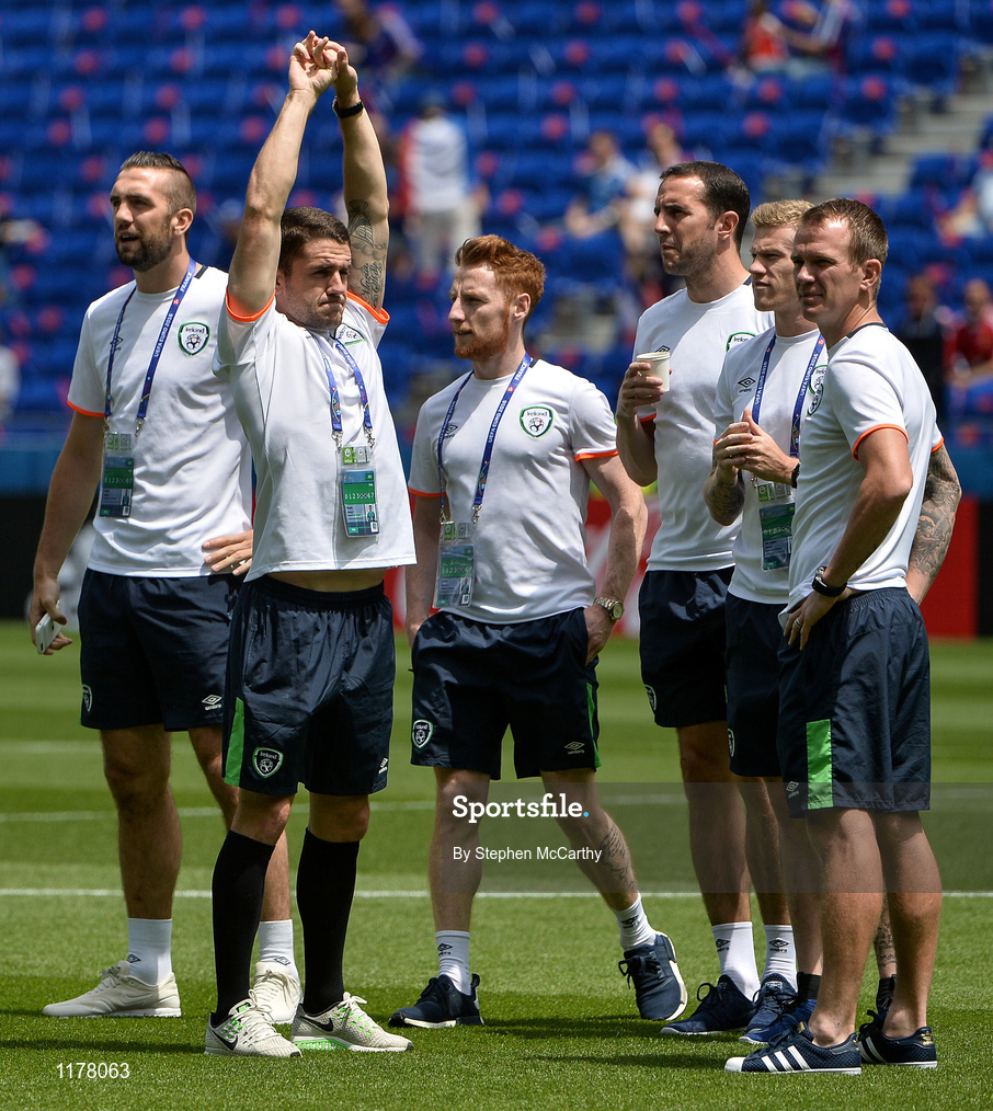 26 June 2016; Republic of Ireland players on the pitch ahead of the UEFA Euro 2016 Round of 16 match between France and Republic of Ireland at Stade des Lumieres in Lyon, France. Photo by Stephen McCarthy/Sportsfile
