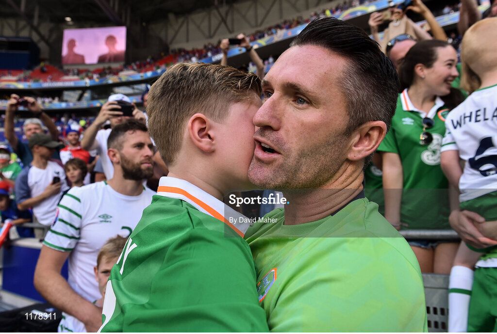 26 June 2016; Robbie Keane of Republic of Ireland with his son Robert after the UEFA Euro 2016 Round of 16 match between France and Republic of Ireland at Stade des Lumieres in Lyon, France. Photo by David Maher/Sportsfile