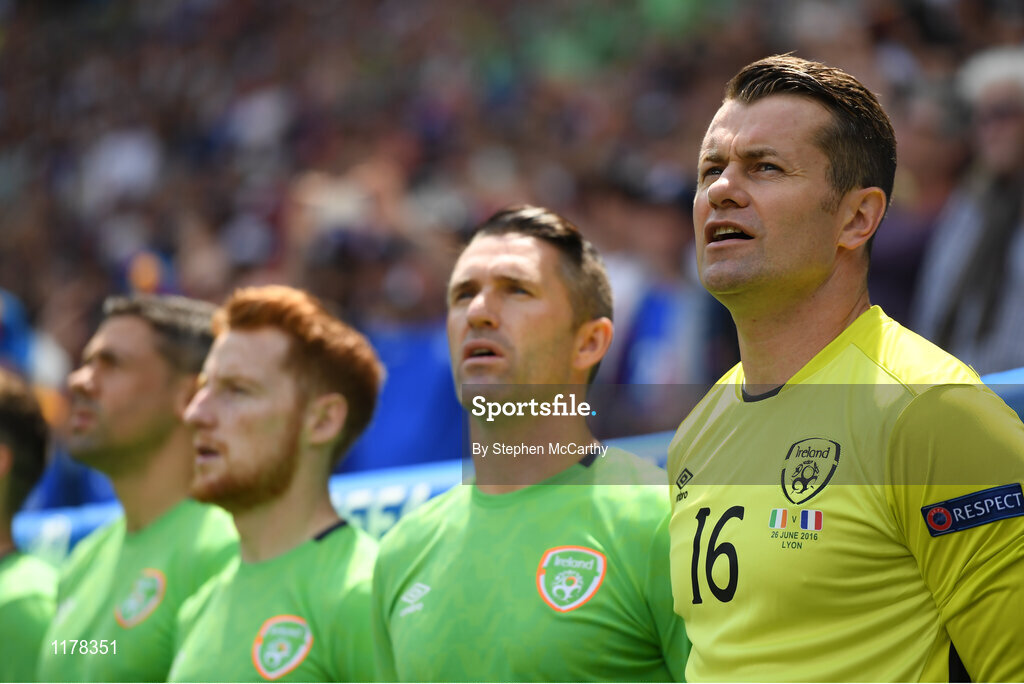 26 June 2016; The Republic of Ireland bench, from right, Shay Given, Robbie Keane and Stephen Quinn during the UEFA Euro 2016 Round of 16 match between France and Republic of Ireland at Stade des Lumieres in Lyon, France. Photo by Stephen McCarthy/Sportsfile