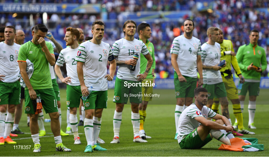 26 June 2016; Republic of Ireland players on the pitch after defeat to France in the UEFA Euro 2016 Round of 16 match between France and Republic of Ireland at Stade des Lumieres in Lyon, France. Photo by Stephen McCarthy/Sportsfile