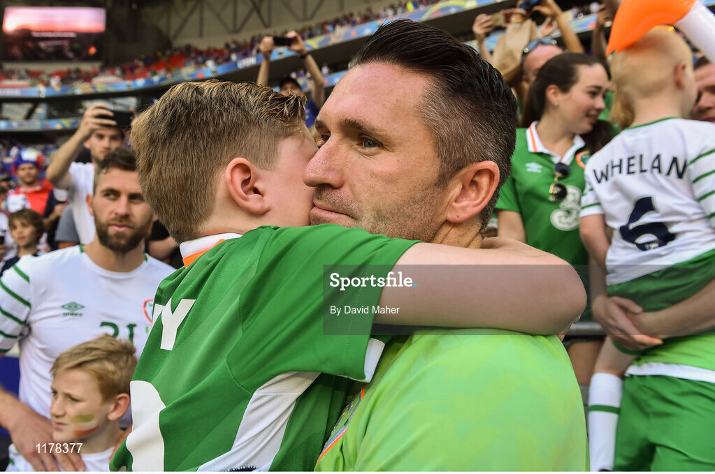 26 June 2016; Robbie Keane of Republic of Ireland with his son Robert after the UEFA Euro 2016 Round of 16 match between France and Republic of Ireland at Stade des Lumieres in Lyon, France. Photo by David Maher/Sportsfile