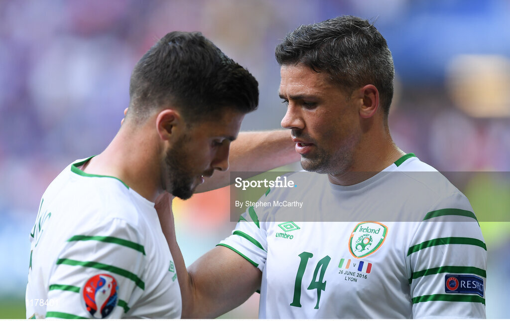 26 June 2016; Jon Walters, right, and Shane Long of Republic of Ireland following the UEFA Euro 2016 Round of 16 match between France and Republic of Ireland at Stade des Lumieres in Lyon, France. Photo by Stephen McCarthy/Sportsfile
