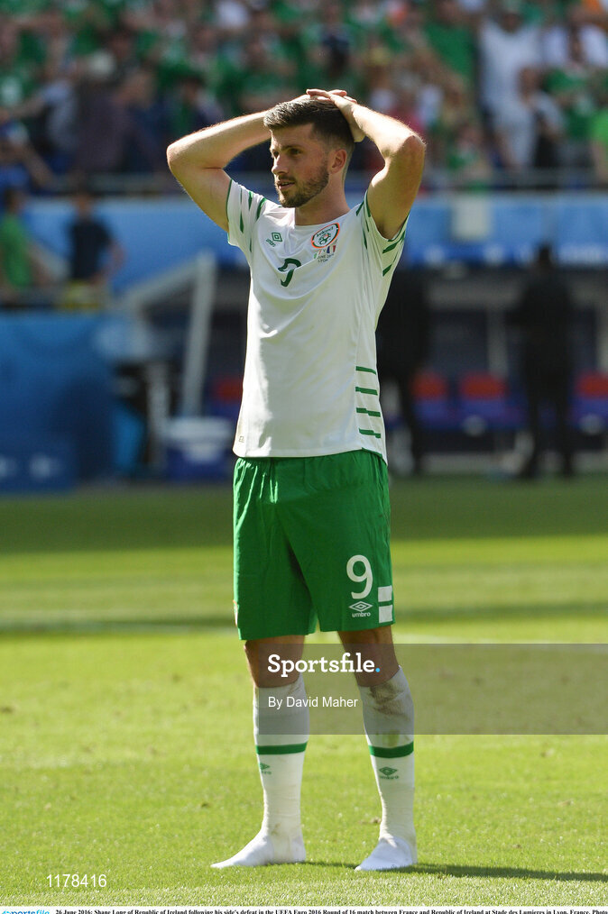 26 June 2016; Shane Long of Republic of Ireland following his side's defeat in the UEFA Euro 2016 Round of 16 match between France and Republic of Ireland at Stade des Lumieres in Lyon, France. Photo by David Maher/Sportsfile