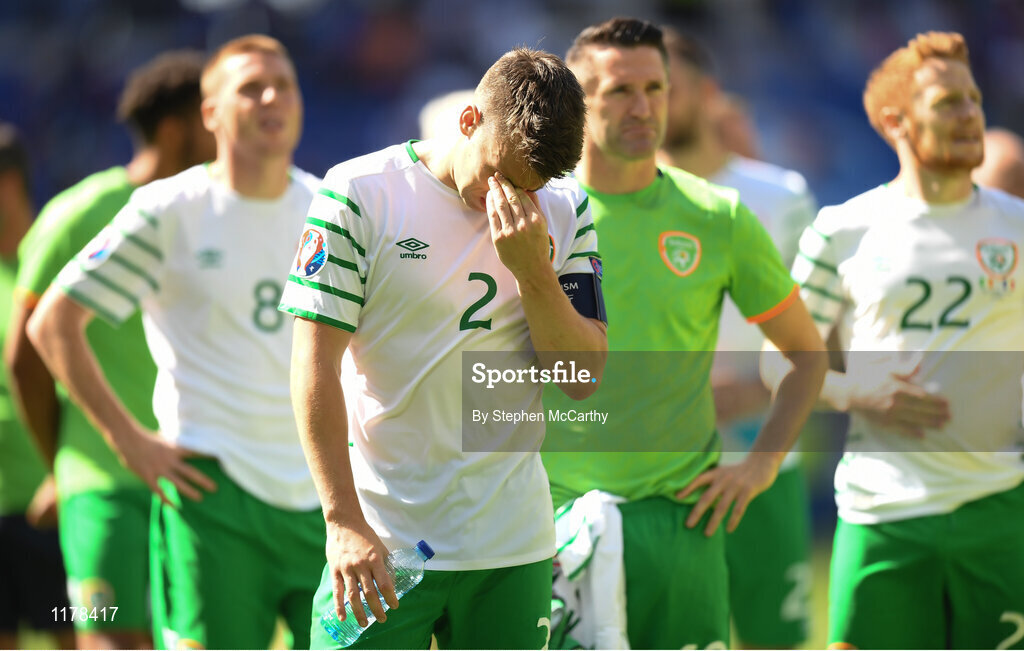 26 June 2016; Seamus Coleman of Republic of Ireland following his side's defeat in the UEFA Euro 2016 Round of 16 match between France and Republic of Ireland at Stade des Lumieres in Lyon, France. Photo by Stephen McCarthy/Sportsfile