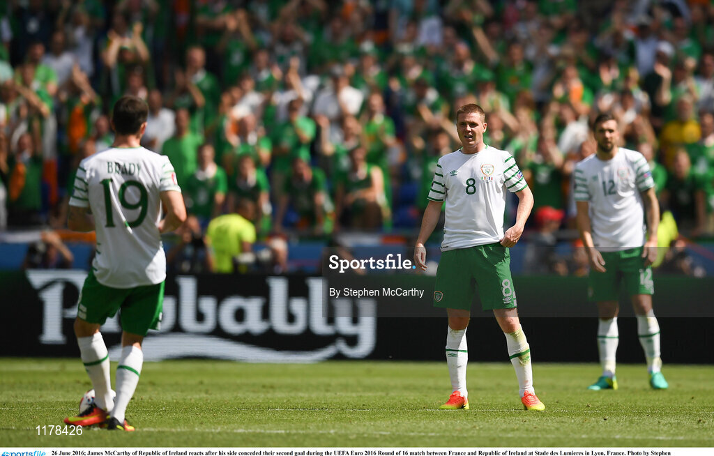 26 June 2016; James McCarthy of Republic of Ireland reacts after his side conceded their second goal during the UEFA Euro 2016 Round of 16 match between France and Republic of Ireland at Stade des Lumieres in Lyon, France. Photo by Stephen McCarthy/Sportsfile