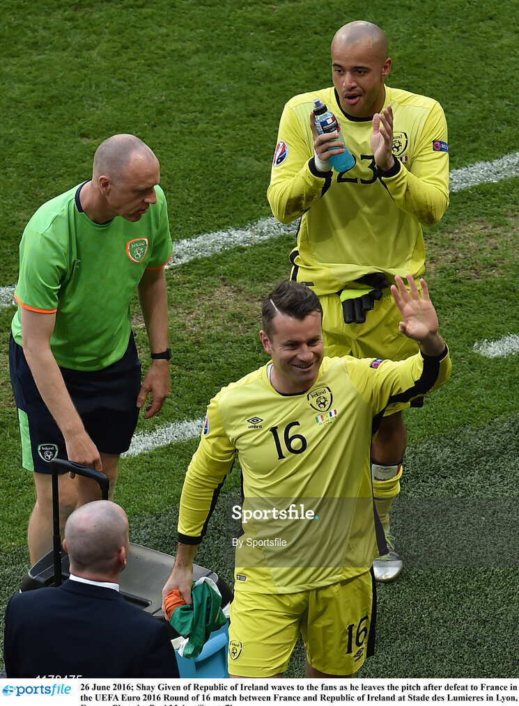 26 June 2016; Shay Given of Republic of Ireland waves to the fans as he leaves the pitch after defeat to France in the UEFA Euro 2016 Round of 16 match between France and Republic of Ireland at Stade des Lumieres in Lyon, France. Photo by Sportsfile