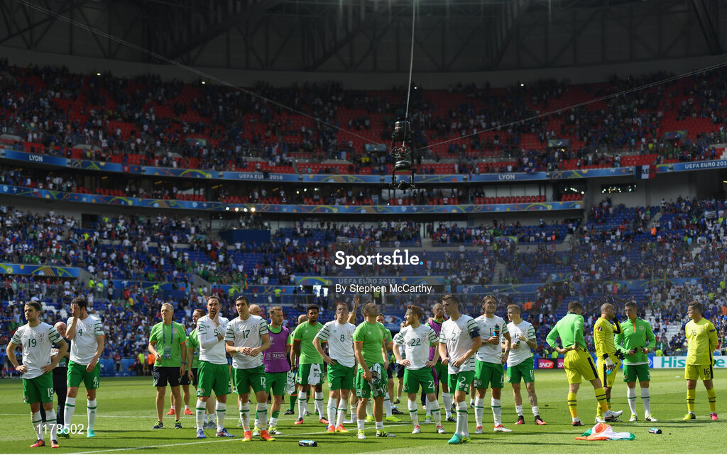 26 June 2016; Republic of Ireland players following the UEFA Euro 2016 Round of 16 match between France and Republic of Ireland at Stade des Lumieres in Lyon, France. Photo by Stephen McCarthy/Sportsfile