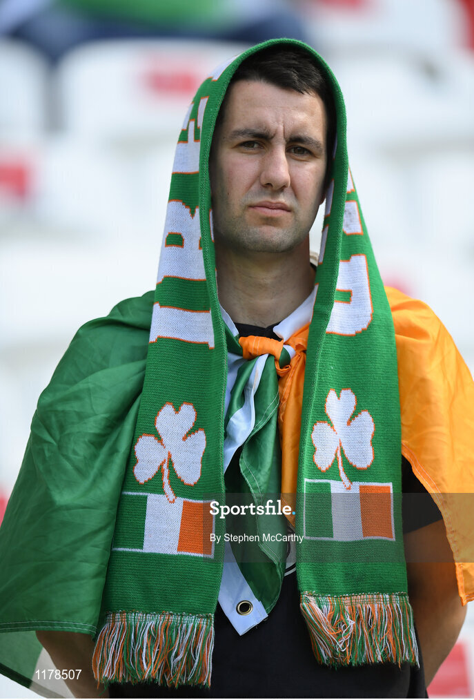 26 June 2016; A dejected Republic of Ireland supporter after defeat in the UEFA Euro 2016 Round of 16 match between France and Republic of Ireland at Stade des Lumieres in Lyon, France. Photo by Stephen McCarthy/Sportsfile