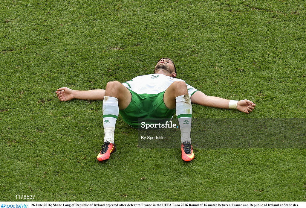 26 June 2016; Shane Long of Republic of Ireland dejected after defeat to France in the UEFA Euro 2016 Round of 16 match between France and Republic of Ireland at Stade des Lumieres in Lyon, France. Photo by Sportsfile