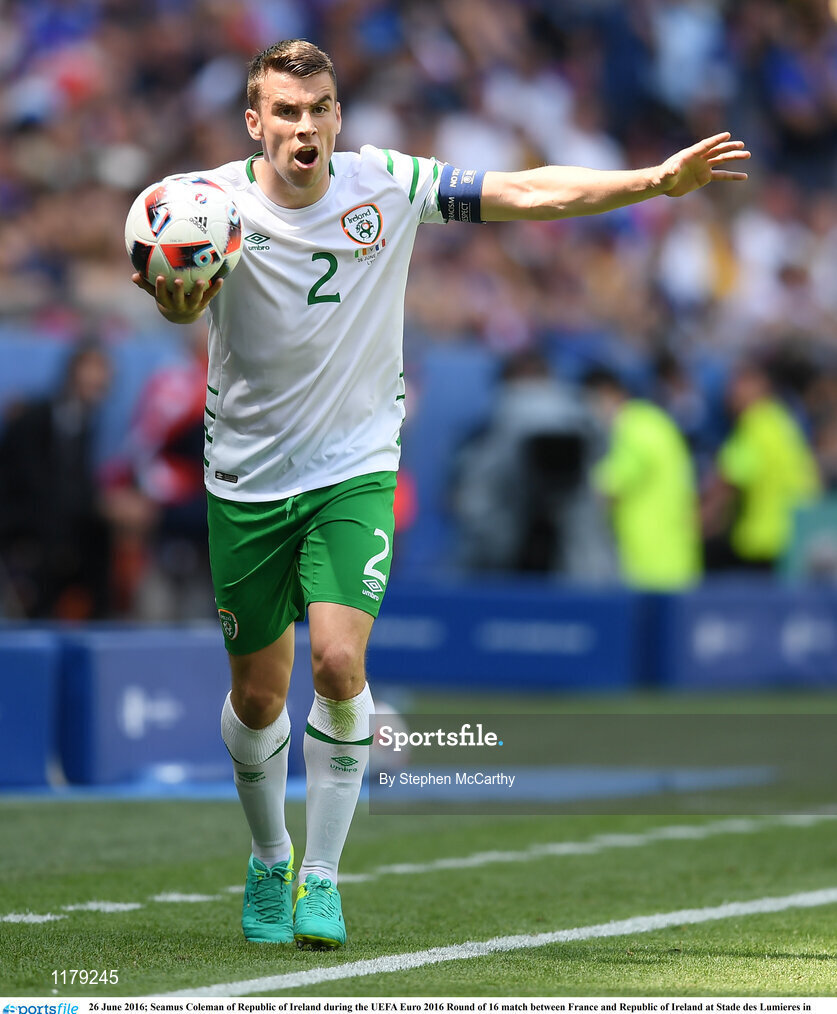 26 June 2016; Seamus Coleman of Republic of Ireland during the UEFA Euro 2016 Round of 16 match between France and Republic of Ireland at Stade des Lumieres in Lyon, France. Photo by Stephen McCarthy/Sportsfile