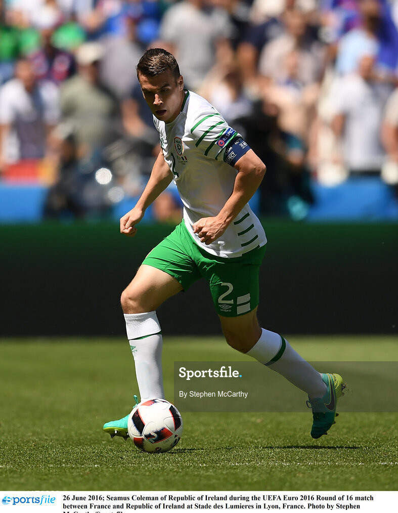 26 June 2016; Seamus Coleman of Republic of Ireland during the UEFA Euro 2016 Round of 16 match between France and Republic of Ireland at Stade des Lumieres in Lyon, France. Photo by Stephen McCarthy/Sportsfile