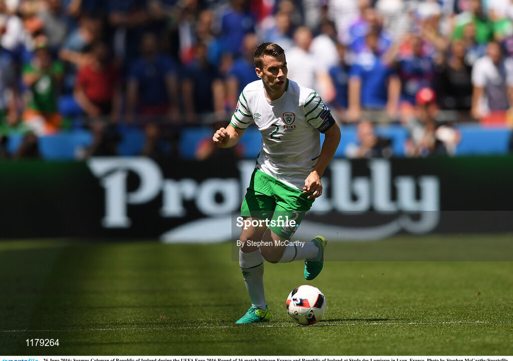 26 June 2016; Seamus Coleman of Republic of Ireland during the UEFA Euro 2016 Round of 16 match between France and Republic of Ireland at Stade des Lumieres in Lyon, France. Photo by Stephen McCarthy/Sportsfile