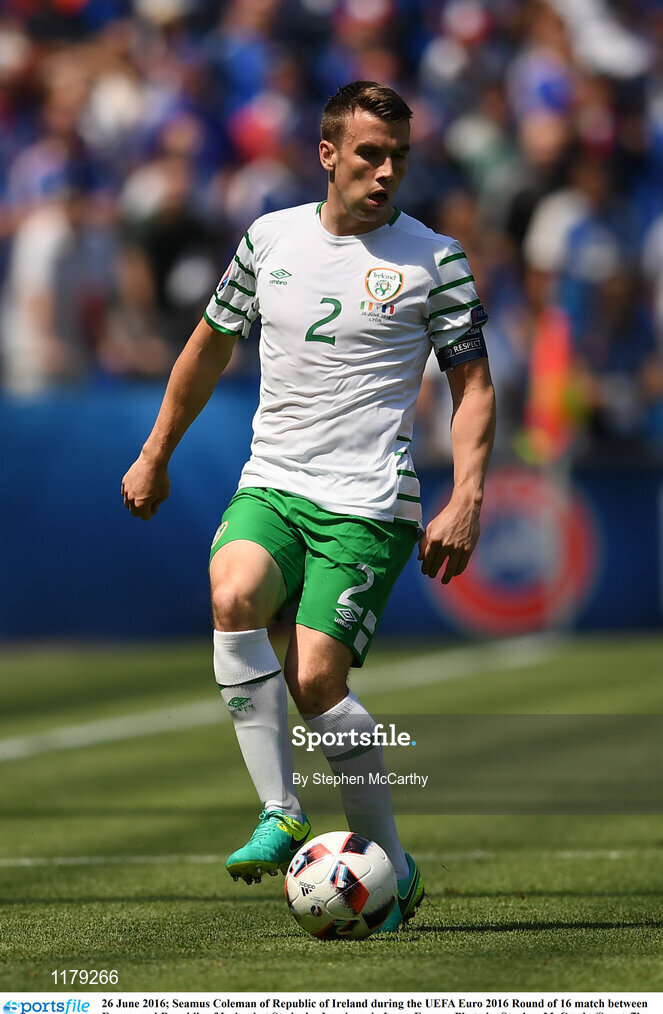 26 June 2016; Seamus Coleman of Republic of Ireland during the UEFA Euro 2016 Round of 16 match between France and Republic of Ireland at Stade des Lumieres in Lyon, France. Photo by Stephen McCarthy/Sportsfile