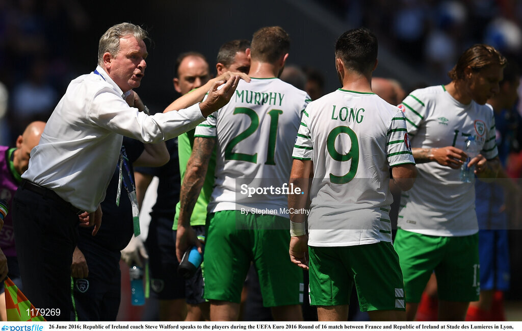 26 June 2016; Republic of Ireland coach Steve Walford speaks to the players during the UEFA Euro 2016 Round of 16 match between France and Republic of Ireland at Stade des Lumieres in Lyon, France. Photo by Stephen McCarthy/Sportsfile