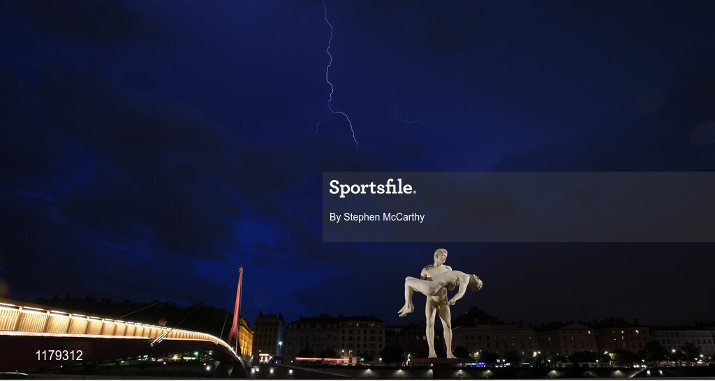 26 June 2016; A general view of Lyon as lighting strikes before the UEFA Euro 2016 Round of 16 match between France and Republic of Ireland at Stade des Lumieres in Lyon, France. Photo by Stephen McCarthy/Sportsfile
