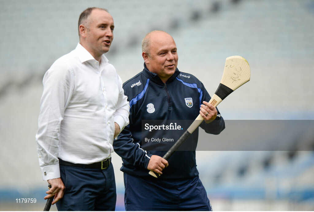 28 June 2016; Waterford hurling manager Derek McGrath, right, with former Tipperary All-Ireland captain Eoin Kelly. Etihad Airways Renewal of GAAGO Partnership. Croke Park, Dublin. Photo by Cody Glenn/Sportsfile