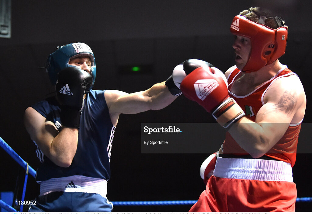 2 July 2016; Eduard Abdrakhmanov of Russia, left, exchanges punches with Joe Ward of Ireland in their 81kg bout during a Boxing Test Match event between Ireland and Russia at The National Stadium in Dublin. Photo by Sportsfile