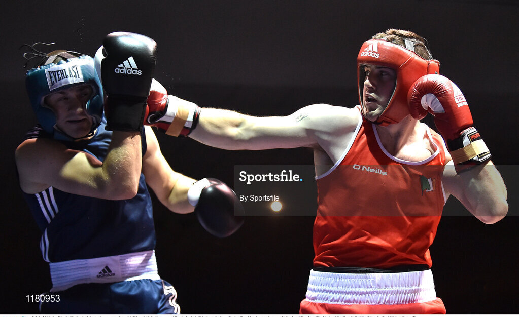 2 July 2016; Joe Ward of Ireland, right, exchanges punches with Eduard Abdrakhmanov of Russia in their 81kg bout during a Boxing Test Match event between Ireland and Russia at The National Stadium in Dublin. Photo by Sportsfile