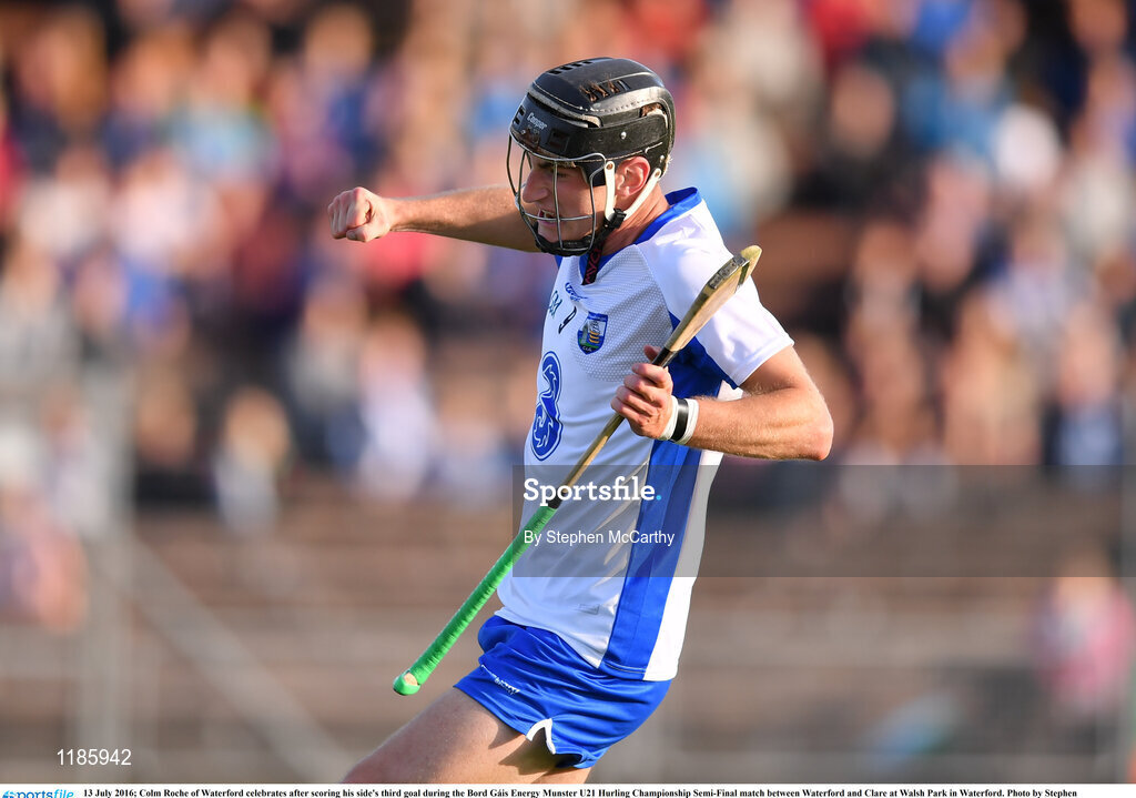 13 July 2016; Colm Roche of Waterford celebrates after scoring his side's third goal during the Bord Gáis Energy Munster U21 Hurling Championship Semi-Final match between Waterford and Clare at Walsh Park in Waterford. Photo by Stephen McCarthy/Sportsfile