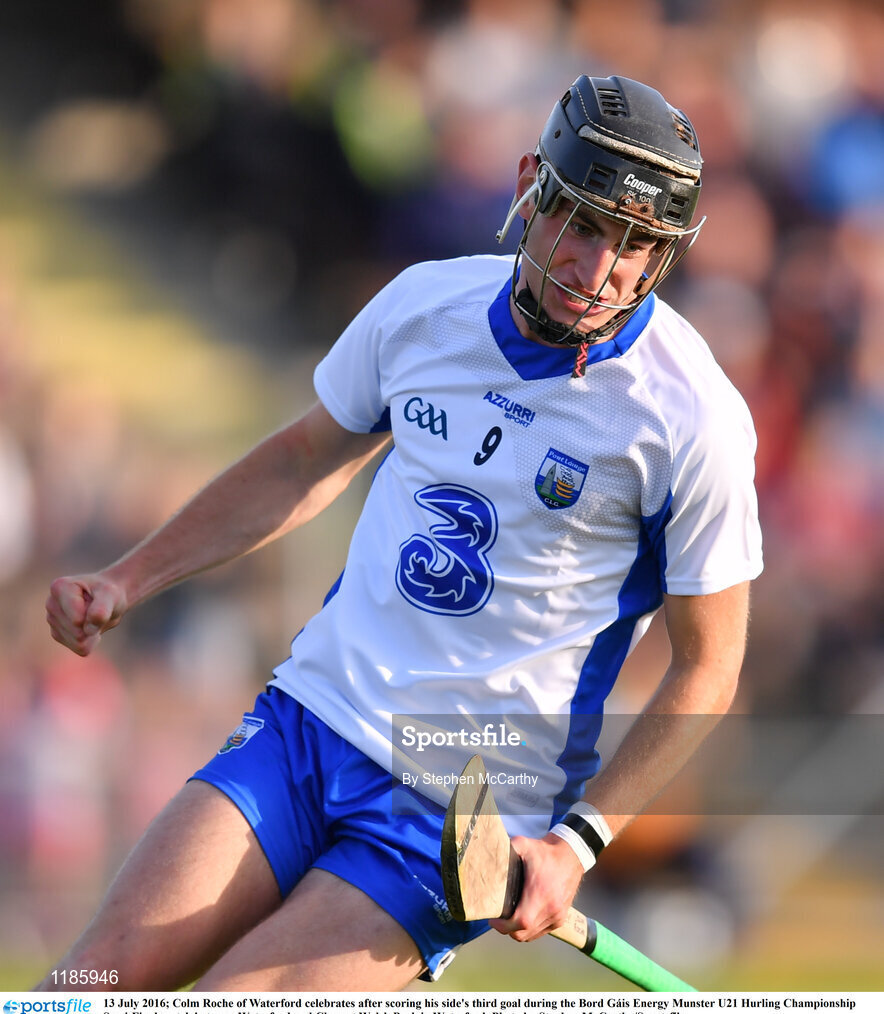 13 July 2016; Colm Roche of Waterford celebrates after scoring his side's third goal during the Bord Gáis Energy Munster U21 Hurling Championship Semi-Final match between Waterford and Clare at Walsh Park in Waterford. Photo by Stephen McCarthy/Sportsfile