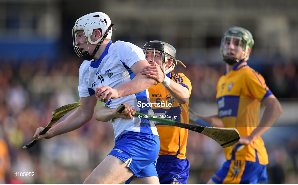 13 July 2016; Shane Bennett of Waterford in action against Aidan McGuane of Clare during the Bord Gáis Energy Munster U21 Hurling Championship Semi-Final match between Waterford and Clare at Walsh Park in Waterford. Photo by Stephen McCarthy/Sportsfile