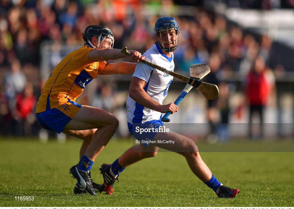 13 July 2016; Patrick Curran of Waterford in action against Rory Hayes of Clare during the Bord Gáis Energy Munster U21 Hurling Championship Semi-Final match between Waterford and Clare at Walsh Park in Waterford. Photo by Stephen McCarthy/Sportsfile