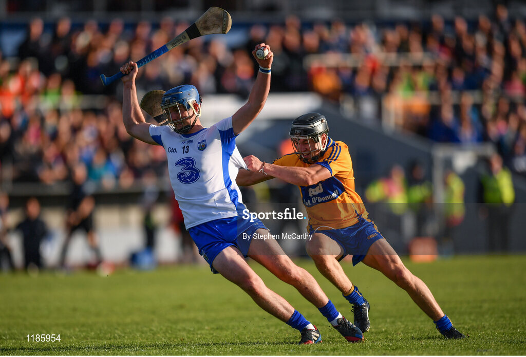 13 July 2016; Patrick Curran of Waterford in action against Rory Hayes of Clare during the Bord Gáis Energy Munster U21 Hurling Championship Semi-Final match between Waterford and Clare at Walsh Park in Waterford. Photo by Stephen McCarthy/Sportsfile