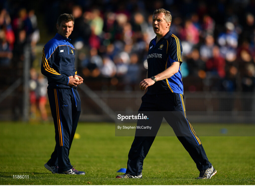 13 July 2016; Clare manager Donal Moloney and selector Kieran Corcoran, left, during the Bord Gáis Energy Munster U21 Hurling Championship Semi-Final match between Waterford and Clare at Walsh Park in Waterford. Photo by Stephen McCarthy/Sportsfile
