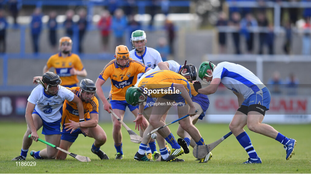 13 July 2016; Clare and Waterford players tussle for possession during the Bord Gáis Energy Munster U21 Hurling Championship Semi-Final match between Waterford and Clare at Walsh Park in Waterford. Photo by Stephen McCarthy/Sportsfile