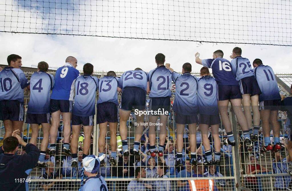 20 July 2003; The Dublin minor team celebrate their win against Laois at Hill 16. Leinster Minor Football Championship Final, Dublin v Laois, Croke Park, Dublin. Picture credit; Matt Browne / SPORTSFILE *EDI*