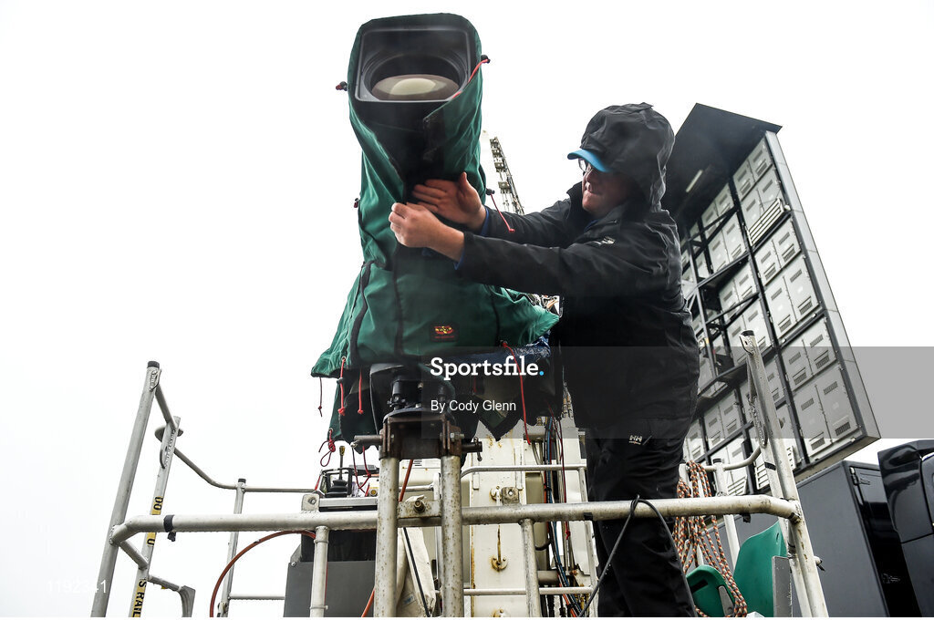 26 July 2016; Oliver Dymale weather-proofs his video camera ahead of a rainy day 2 at the Galway Races in Ballybrit, Co Galway. Photo by Cody Glenn/Sportsfile